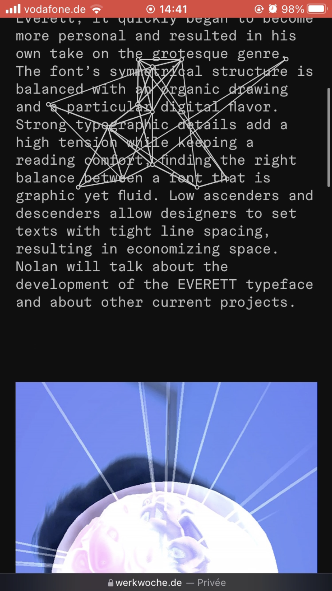 Nolan Paparelli is a Swiss graphic and type designer currently based in Munich, Germany. Originally from the french-speaking part of Switzerland, he graduated with a Bachelor in Graphic design at ECAL in 2015 and officially runs his own independent practice since 2017. Through the years, in parallel of developing his personal work, he collaborated with the likes of Swiss Typefaces, Herburg Weiland and Think Work Observe to name a few. In 2021, his typeface Everett has been published by WELTKERN®, a type foundry with which he is closely associated. His work focuses mainly in the fields of editorial design, visual identity, web and type design with a strong sense of detail and particular attention to typography.